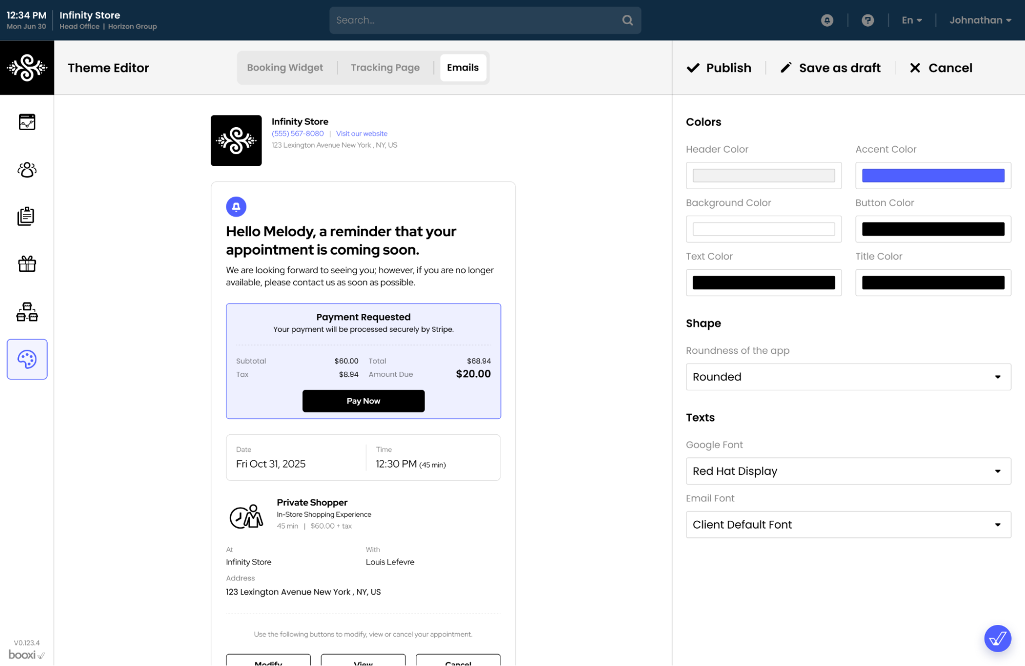 Thanks to our Theme feature, you can now fully customize your automated emails to faithfully reflect your brand’s visual identity. Just like your booking widget, your emails become an extension of your world. By using your specific colors and fonts, you strengthen brand consistency with every message sent.
